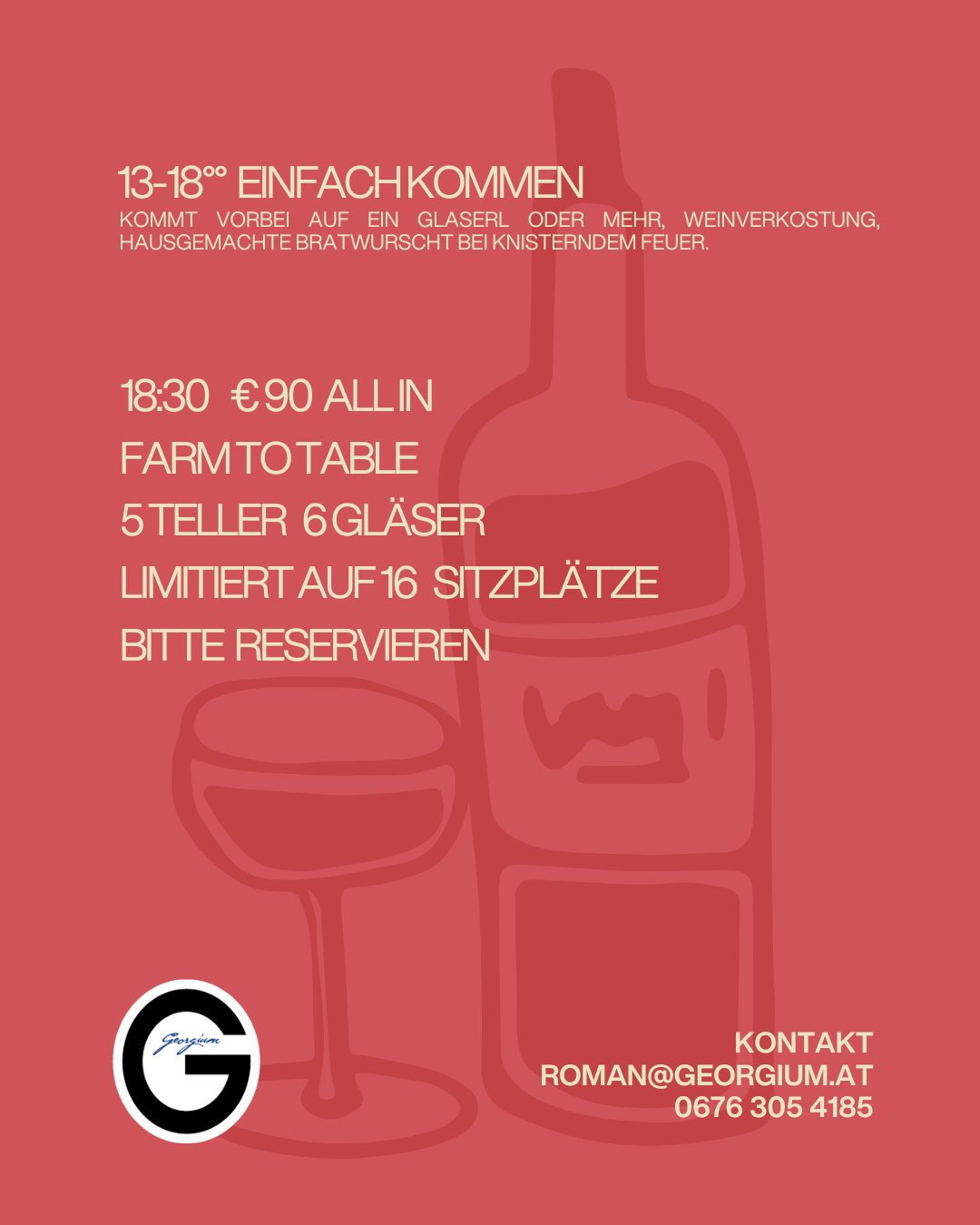 Regulär Donnerstags ist unser Verkosttag am Weingut. Ob mit oder ohne Kulinarik - wir freuen uns über Ihre Anfrage und Reservierung.